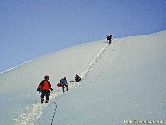 Subject : Gondogorola Pass from Hushe Side This is my 1st Topic on Pak Travelism. I am going to share some detail of my recent hiking trip in Northern Area which involved Gondogoro La Pass, vigine glacier, Concordia & baltoro glacier and many other beautiful places which were explored by me & my fellow companions. Here is a brief writeup of expedition. After exploring the heart of Karakoram Range; trekking along highest peaks of the world; crossing the highest mountain pass and walking through on the longest glacial maze outside polar world, we are back to civilization. This nerve cracking expedition was started from Skardu on 25th of August 2012 and ended on 6th of September at skardu. The group comprised of 5 people, Asad, Atif, Bilal, Adnan and I. The planning of this trek was done in dozen of meetings at Dhaba hotel at Karachi. Our plan was to cross world’s highest mountain pass “Gondogorola Pass” in a unique style; that is to say climbing it from the side which is used for descent. To our knowledge, no Pakistani group had ever crossed this pass before from this side. Trekkers usually start their journey from Askole and reach Ali camp in 7 to 8 days. From there, they cross Gondogoro La Pass and descend to the other side which leads them to Hushe village that comes after another 3 days trekking. We planed to start our journey from Hushe village and ended it up at Askole village. I don’t know whose idea it was, but it turned out to be very challenging and equally rewarding experience that filled us with sense of accomplishment at end of the day. From Hushe village, it took us 12 days to reach Askole and each day has a story of its own. Overall it was 16 days trip from Karachi to Karachi. We acquired services of our tested company i.e. Karakoram Adventure Holidays. Ali Raza and Anees who owns this trekking company, organized the trek very professionally and economically. It was our second experience with them and they won our confidence again. The cookery and kitchen matters were headed by one Ghulam Nabi alias Mamoo, another nice person who also had accompanied us in one of earlier trek and whose company was enjoyed by every member of the group. Raza, our guide hired 10 porters, one high porter, one cook (Mamoo). Thus the total headcount of expedition team was 18 including 5 of us. The climax of this expedition was crossing Gondogoro La pass. It is over 19,000 feet high and climbing it requires higher fitness as well as commitment level. Climbing it from Hushe side is more difficult as it is steeper and rocks are covered with very slippery ice which makes it difficult to walk on. Secondly, climbing gets more challenging from Hushe side due to rapid increase in altitude. We started climbing in the night at about 10:00 p.m. The reason for choosing night time is that freezing temperature at night keeps the rocks fastened in ice; thus reducing risk of rocks fall. This makes it easy to hold rocks for support or put your feet on them. Locals have fixed ropes on both side of pass which becomes very useful especially when crossing slippery-ice patches that we came across during our ascent. We reached on the top when first ray of sun light was yet to appear. From the top, world most beautiful mountain scenery was in front of us. Five of world highest peaks were standing in the middle of countless spears army of mountains. We stayed at LA top for around one hour and then start our descent toward Ali Camp. Trip pictures are attached. Descending from Gondogorola Pass Top